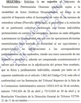 Nos amparamos para ello en las recientes Sentencias dictadas por la Sala de lo Contencioso Administrativo del Tribunal Supremo números 719 y 731 del año 2024, que amplían considerablemente las operaciones que han de quedar sujetas a la modalidad de Actos Jurídicos Documentados, incluyendo extinciones conjuntas de condominios generados en distintos momentos como es el caso, lo que de hecho ha supuesto una tributación muy beneficiosa.